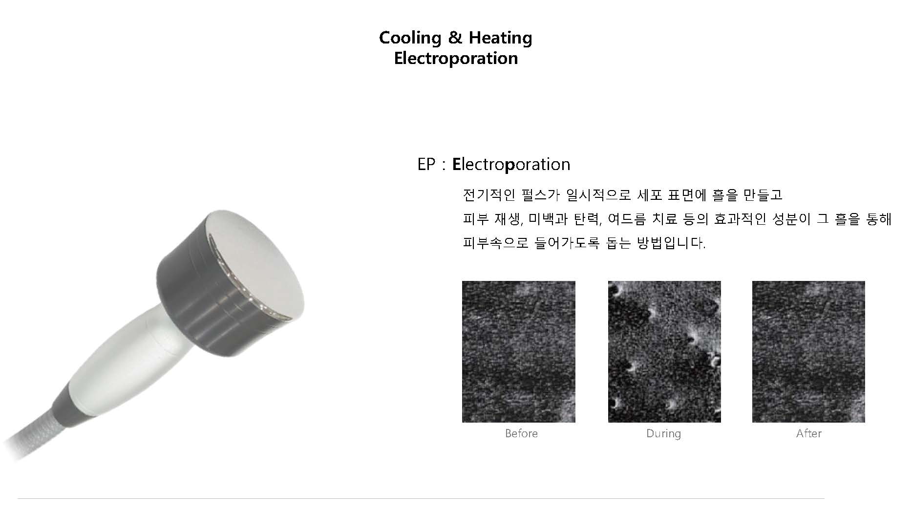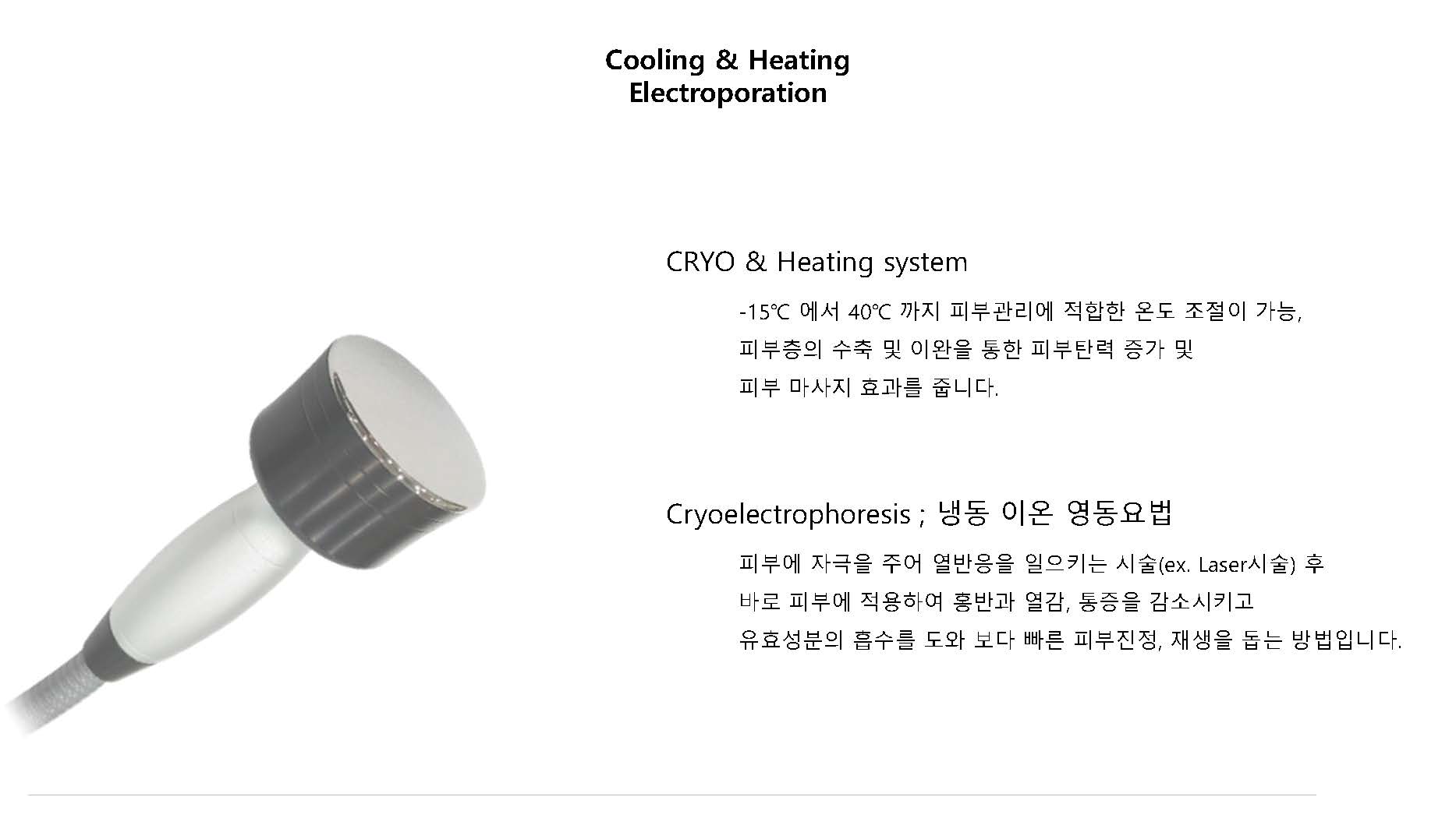 -15°C에서 40°C 까지 피부관리에 적합한 온도 조절을 통해 피부층의 수축 및 이완을 통한